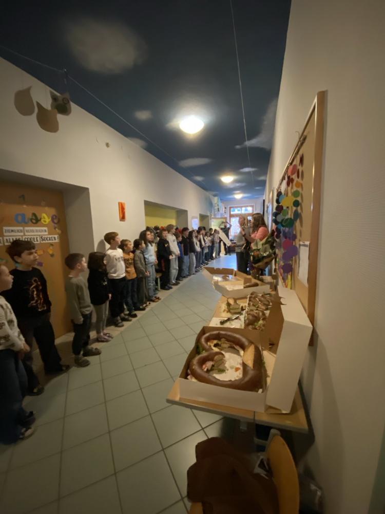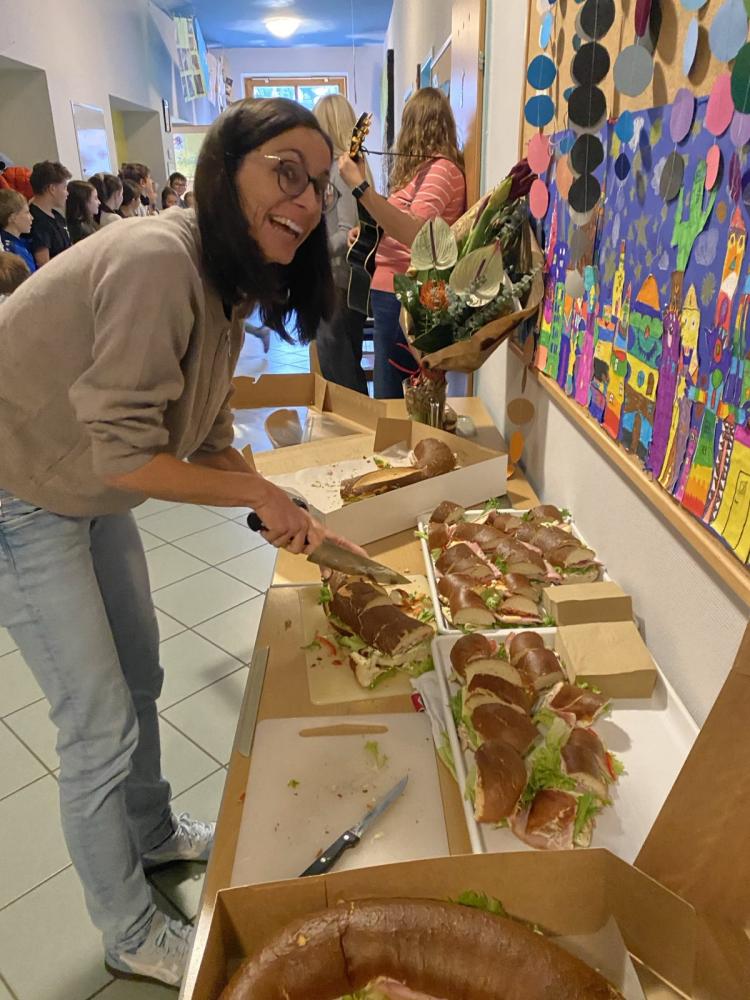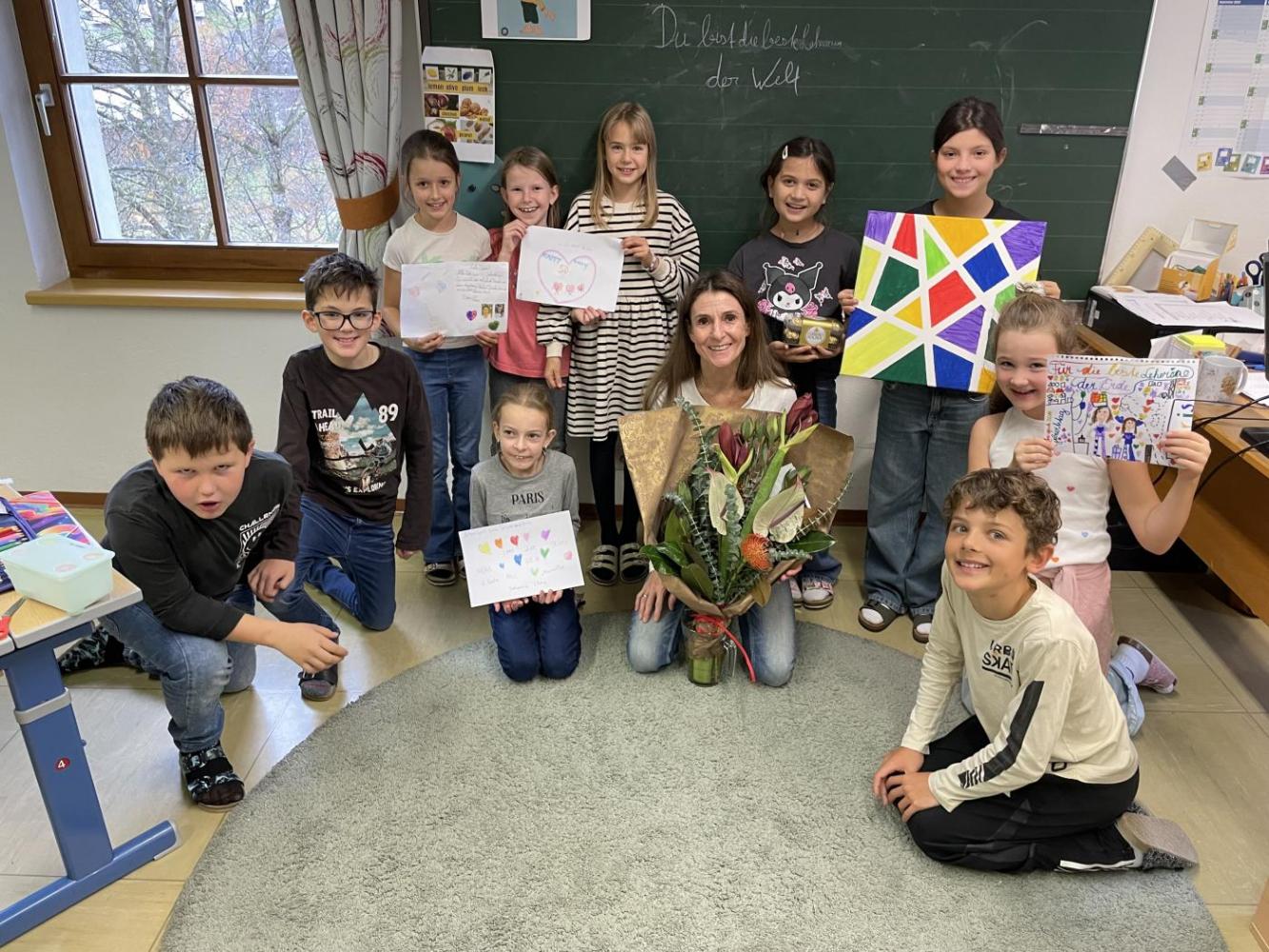 Ja, liebe Doris, 50 wird man nicht alle Tage, darum haben wir uns eine kleine Überraschung ausgedacht. Diese ist sichtlich geglückt. Da uns das herbstliche Wetter nicht in den Pausenhof lockte, überraschten wir unsere Doris im Eingangsbereich der Volksschule. Die Kinder standen bereits mucksmäuschen Still im Gang und begrüßten Doris mit einer Klangwolke. Da ein Video mehr sagt als viele Bilder haben wir die Überraschung festgehalten. Nachdem wir alle gratulieren durften verwöhnte uns der Elternverein mit zwei riesigen Partybrezen, wofür ich mich recht herzlich bedanken möchte.