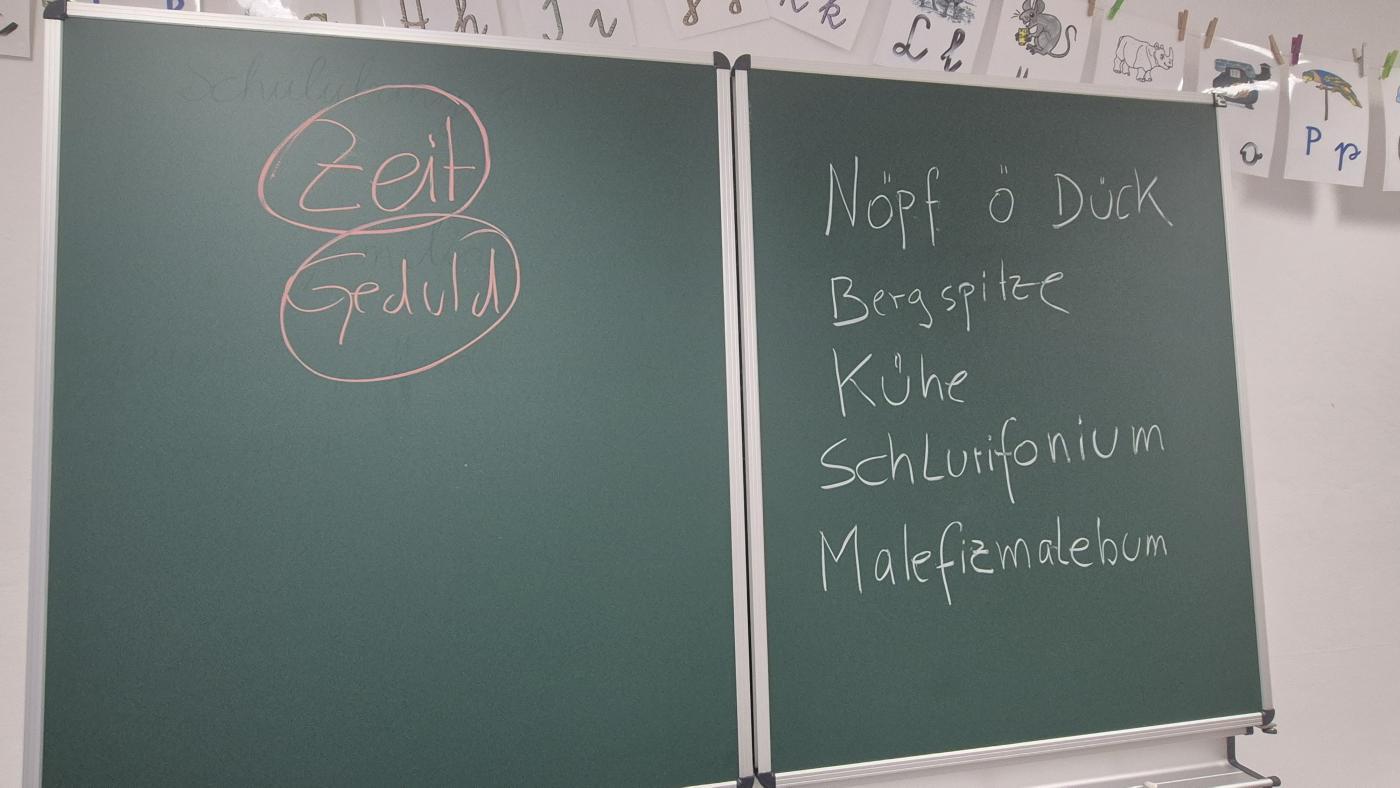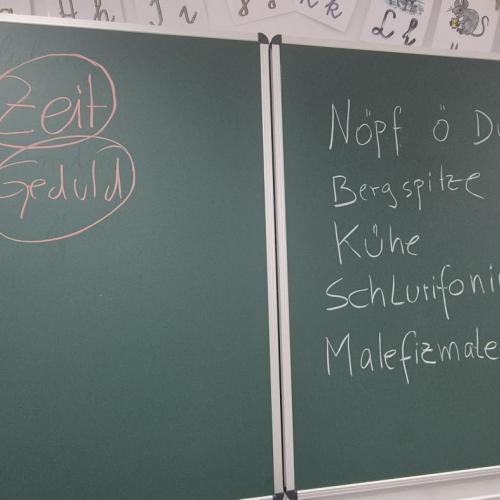 Im Anschluss an die Lesung gab der Autor interessante Einblicke in die Entstehung von Geschichten und erklärte kindgerecht, worauf es beim Schreiben ankommt. Mit viel Kreativität und Fantasie machten sich die Kinder danach selbst ans Werk: Ausgehend von ungewöhnlichen Reizwörtern wie Nöpf ö Dück, Bergspitze, Kühe, Schlurifonium und Malefizmalebum entwickelten sie ihre ganz eigenen Geschichten.