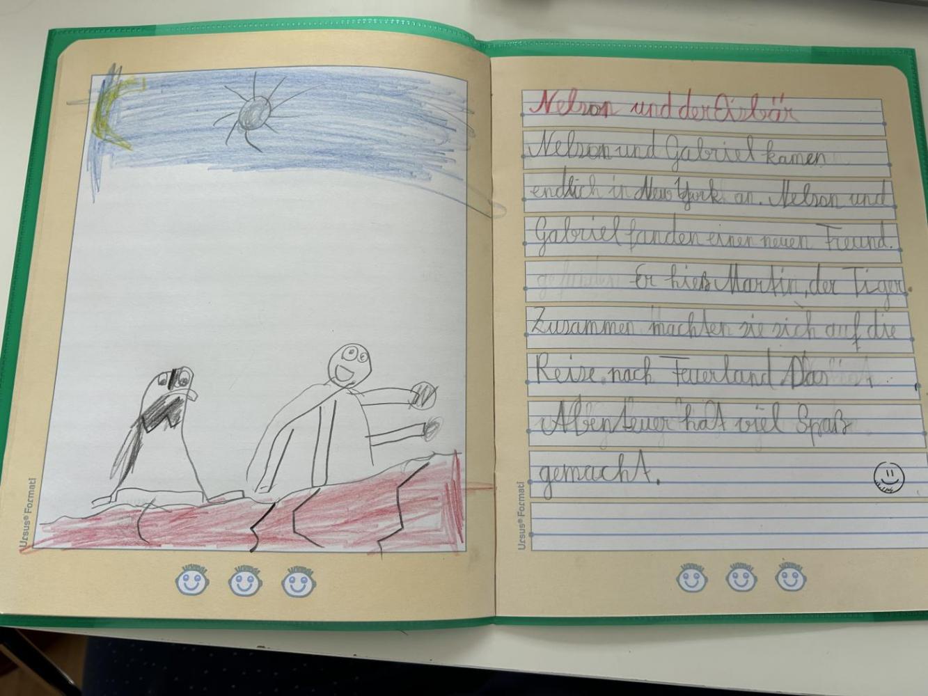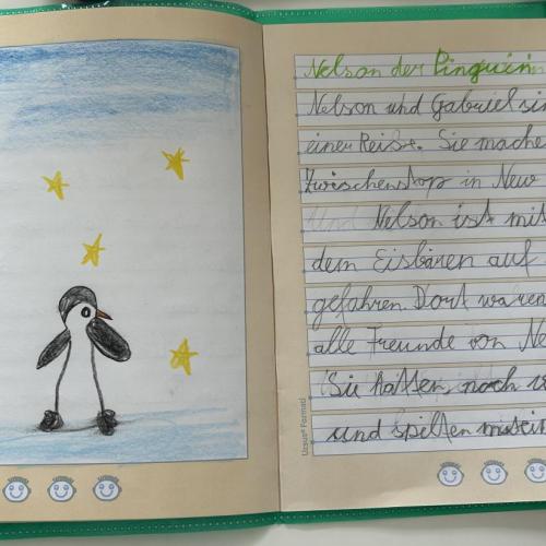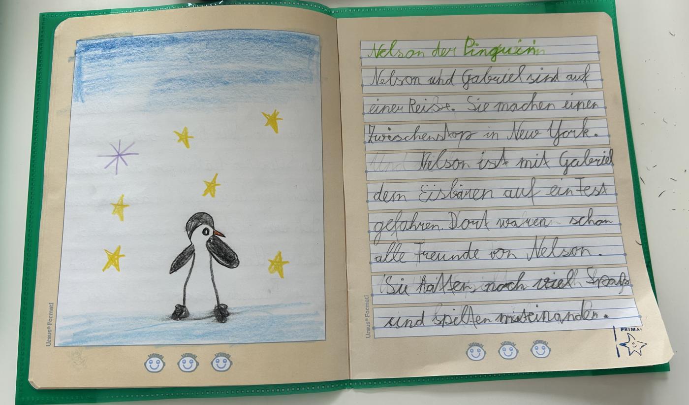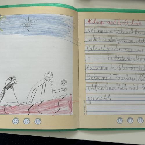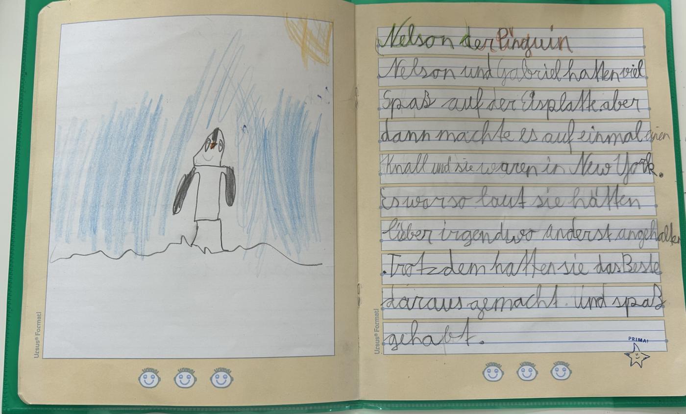Gespannt lauschten wir der lebendigen Lesung und fühlten uns mitten ins Geschehen versetzt. Im Anschluss malten die Kinder der 1. Klasse tolle Bilder, während die 2. Klasse eigene Geschichten über weitere Abenteuer von Nelson schrieb.