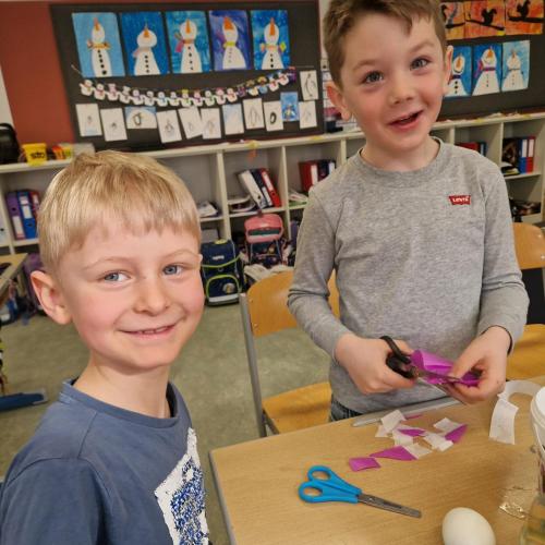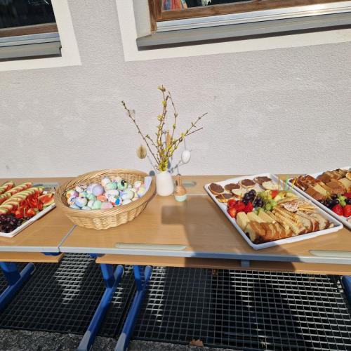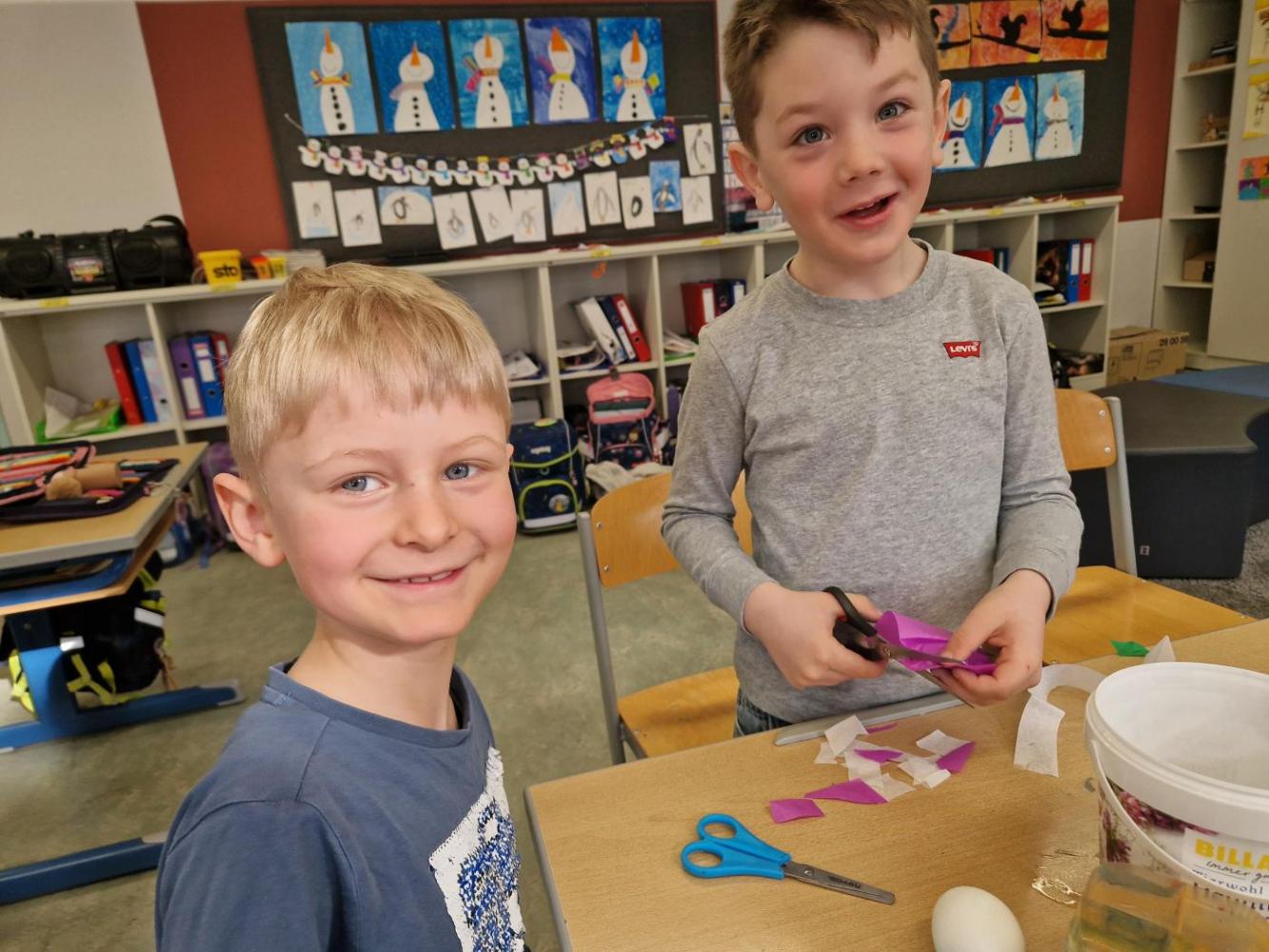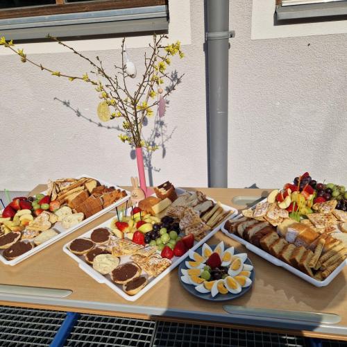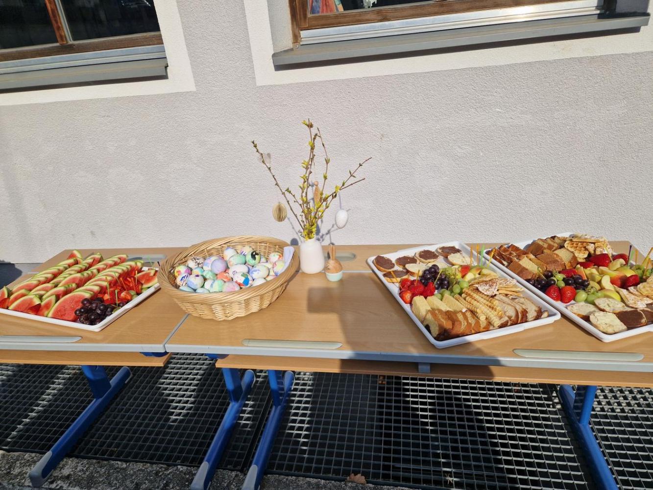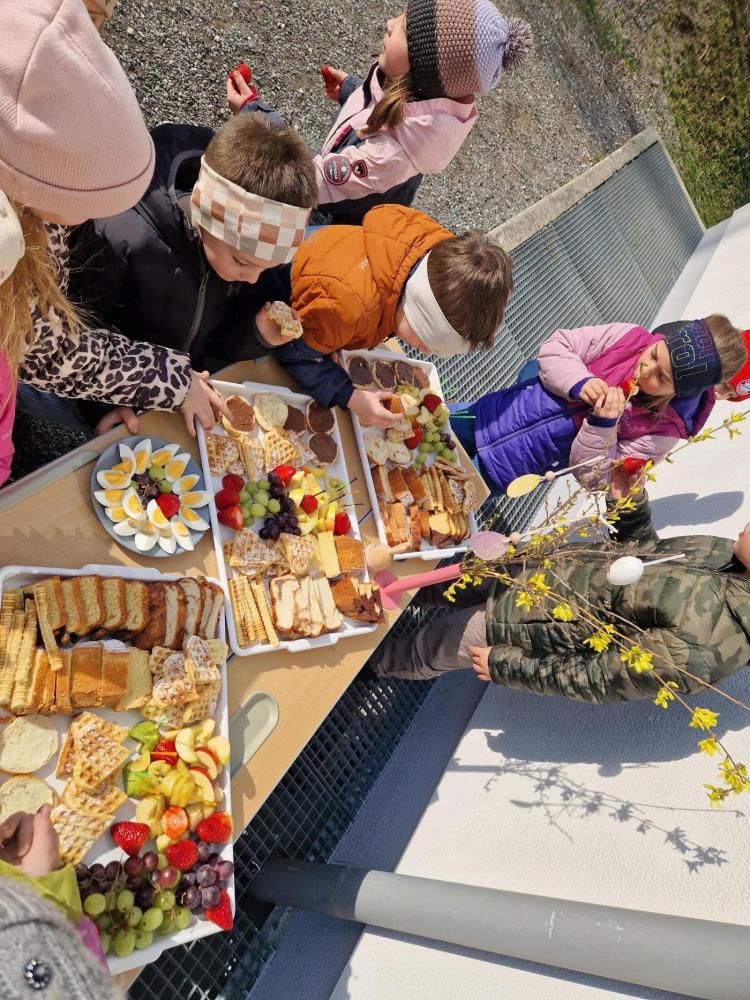 Osterjause von Daniela Ullrich 27. März 2026 Feste und Feiern Elternverein 1. Schulstufe 2025/26 2. Schulstufe 2025/26 3. Schulstufe 2025/26 4. Schulstufe 2025/26 Bei frühlingshaften Temperaturen konnten wir die gesunde Jause im Schulhof genießen. Die Kinder der ersten Klasse durften Eier färben. Die Jause schmeckte den Kindern hervorragend.Dem Elternverein ein herzliches Dankeschön!